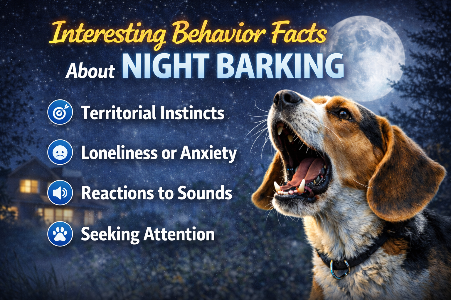 - Nighttime barking often increases during full moons due to light changes
